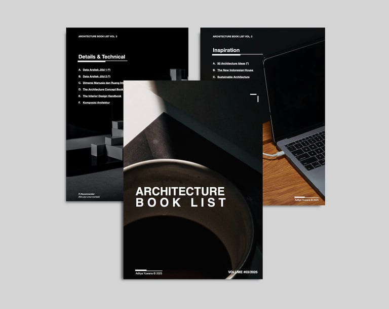 Bingung nyari buku arsitektur? Atau mau nambah koleksi buku arsitektur buat studiomu? Nggak perlu bingung lagi karena semuanya sudah kami susun disini. Buklet ini berisi daftar buku arsitektur yang sudah kami kurasi dan wajib dibaca buat anak arsi.