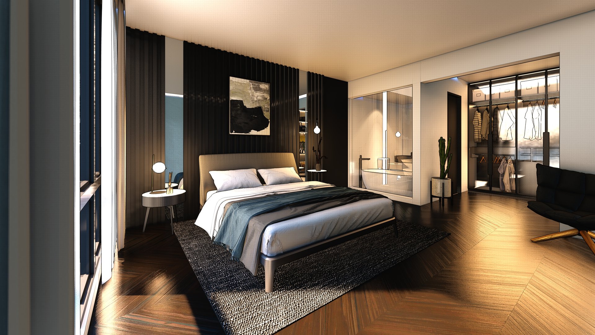 Semua kamar tidur ditempatkan di lantai dua untuk menjaga area istirahat tetap terpisah dari aktivitas harian di lantai dasar. Lantai satu difungsikan sebagai area bersama, tempat keluarga beraktivitas, menerima tamu, dan berinteraksi dengan ruang luar. Pembagian ini membuat kamar tidur terasa lebih tenang dan privat, tanpa gangguan dari kegiatan di dalam maupun di luar rumah.