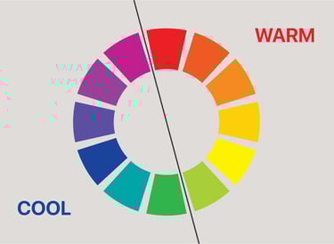 Merah, Oranye dan Kuning (serta warna tersiernya), termasuk dalam warna hangat. Warna-warna tersebut cenderung akan membuat kamu berpikir tentang api, sinar matahari dan kehangatan. Warna hangat memiliki kemampuan untuk membuat ruangan yang berukuran besar menjadi terasa lebih hangat. Sedangkan warna Biru, Hijau dan Ungu (serta warna tersiernya), termasuk dalam warna sejuk atau dingin. Warna-warna tersebut cenderung akan membuat kamu berpikir tentang air, langit, salju, hutan, dan suasana sejuk lainnya. Warna sejuk memiliki kemampuan untuk membuat ruangan yang berukuran kecil menjadi terasa lebih luas.