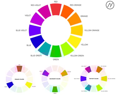 Penjelasan singkatnya seperti ini. Warna primer terdiri dari 3 warna, yakni Merah, Biru, dan Kuning. Warna sekunder adalah percampuran dari 2 warna dasar, misalnya Merah dicampur Kuning, menghasilkan warna Orange. Biru dicampur Kuning menghasilkan warna Hijau. Merah dicampur Biru menghasilkan warna Ungu. Warna tersier adalah pencampuran dari warna primer dan sekunder. Misalnya Merah (primer) dicampur Ungu (sekunder) menghasilkan warna Merah Ungu / Red Violet (bukan Violet Red, warna primer dituliskan lebih dulu).