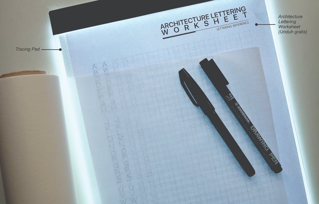 Pilih peralatan dan media yang dapat mempermudah latihan kamu. Saya telah membuat sebuah panduan tulisan tangan yang bisa kamu unduh di halaman ini, untuk membantu kamu membuat tulisan tangan ala arsitek. Kamu tinggal mencetak panduan tersebut dan menjadikannya acuan. Kamu juga bisa menggunakan sebuah tracing pad untuk memudahkan kamu menjiplak. Berikut ini adalah alternatif alat tulis yang biasanya digunakan oleh arsitek untuk menulis.