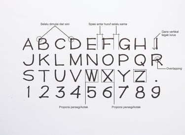 - Selalu mulai dari bagian sudut kiri atas huruf, agar spasi antar huruf selalu berukuran sama.